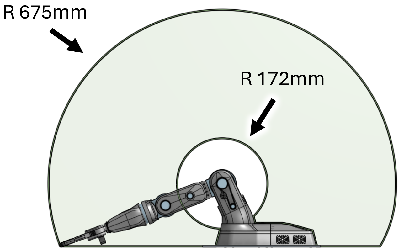 The range of motions determined by mechanical hard stops for each joint