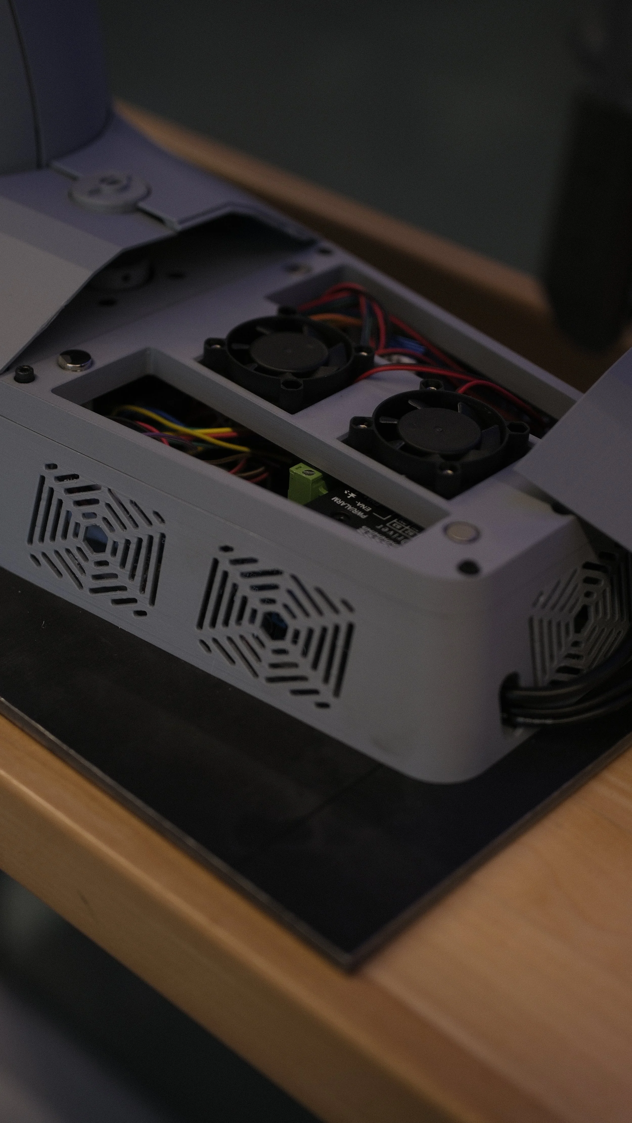 Implemented mechanical hard stops, active cooling for electronics, and magnetic a-surface panels for aesthetics