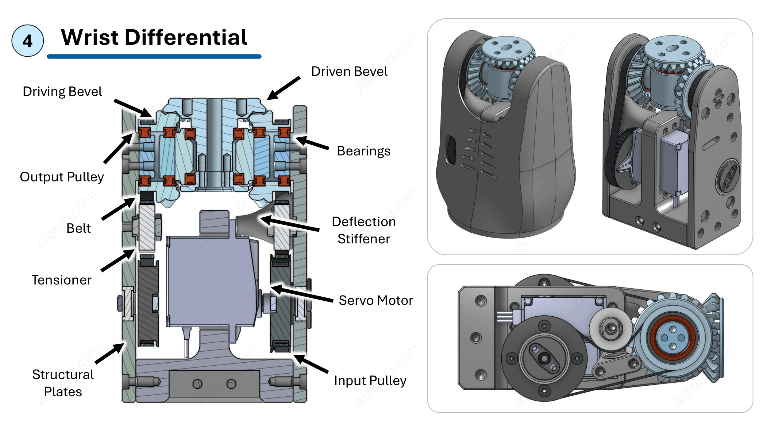 [4] Wrist Differential: Bevel gear differential enabling both wrist articulation and gripper roll